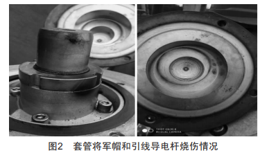 將主變停電后,檢修人員拆解將軍帽,發(fā)現(xiàn)將軍帽內(nèi)缺少壓緊彈簧,引線導(dǎo)電桿與其接觸的將軍帽頂部?jī)?nèi)表面均有明顯的燒傷痕跡,如圖2所示。隨后檢修人員對(duì)燒蝕部位進(jìn)行打磨,并安裝壓緊彈簧(圖3)后,主變直阻測(cè)試合格,主變投入運(yùn)行,紅外測(cè)溫正常。