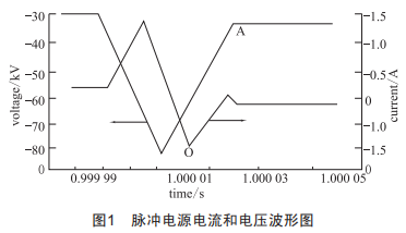 脈沖電源電流和電壓的仿真波形圖如圖1所示。