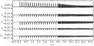 典型波形如圖1所示,其中CT變比為1500/1,從上至下波形分別為:主變高壓側(cè)A相最大一次有效值Ia=1035A、主變高壓側(cè)B相最大一次有效值Ib=360A、主變高壓側(cè)C相最大一次有效值Ic=795A、主變接地中性線N相最大一次有效值I0=390A、高廠變高壓側(cè)A相最大一次有效值I-a=555A。