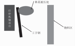 (2)事發(fā)時(shí),操作員正從物料堆放區(qū)將一條工字鋼吊起往打砂機(jī)輸送臺(tái)方向輸送。