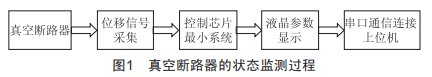 真空斷路器是電力系統(tǒng)中的重要組成元素,要想提高電力系統(tǒng)運行的穩(wěn)定性,在對設(shè)備狀態(tài)進(jìn)行監(jiān)測過程中,技術(shù)人員需明確真空斷路器的分閘、合閘斷開時間、運行速度以及其他運行參數(shù),針對性地實施監(jiān)控。真空斷路器的狀態(tài)監(jiān)測過程如圖1所示。