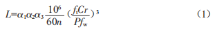 發(fā)電機采用深溝球軸承,對軸承疲勞壽命進行修正,其計算公式如下: