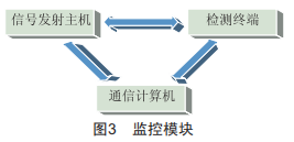 本系統(tǒng)由三部分組成:監(jiān)控中心、監(jiān)控主機(含調(diào)制設(shè)備)、監(jiān)控終端,如圖2所示。監(jiān)控主機安裝于配電所(或箱變)內(nèi),連接待監(jiān)測電纜的首端,終端模塊安裝于配電箱(或設(shè)備箱)內(nèi),連接待監(jiān)測電纜的末端。監(jiān)控主機、電纜和終端模塊組成一個完整的電流回路,在電纜被盜割時,回路斷開,監(jiān)控主機檢測到該電纜電氣參數(shù)發(fā)生突變,即可判斷該電纜被盜。