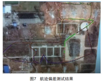 解算出了人工標志點的實時位置后,可進一步推算出無人機的航跡,如圖7所示,虛線路徑為規(guī)劃的標準路徑,實線為無人機實際航跡。