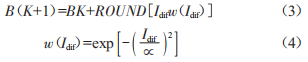 式中,BK表示背景:RoUND表示四舍五入:I+di表示當前圖像和背景的灰度差值:w(I+di)為權值函數(shù),z為一正常數(shù)。