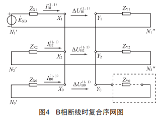 該故障為線路單相斷線故障,對于B相斷線,有: