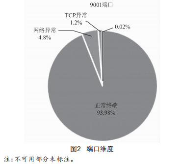 網(wǎng)絡(luò)維度分析分為網(wǎng)絡(luò)異常和TCP建立異常,該類方式可按終端是否能ping通和是否穩(wěn)定建立TCP連接的情況進(jìn)行分類,對(duì)于具體端口,在通常情況下,若批量出現(xiàn)無(wú)TCP連接且網(wǎng)絡(luò)正常的情況,則很可能為管理該端口的進(jìn)程出現(xiàn)異常。端口維度中,可根據(jù)管理終端的端口對(duì)終端在線率進(jìn)行分類,對(duì)比總體在線率可直觀地得到哪些端口的在線率整體偏低,可針對(duì)性地進(jìn)行整改。服務(wù)器維度中,則是在端口維度的基礎(chǔ)上進(jìn)行再分類,目的是能判斷是否為某服務(wù)器整體出現(xiàn)異常。