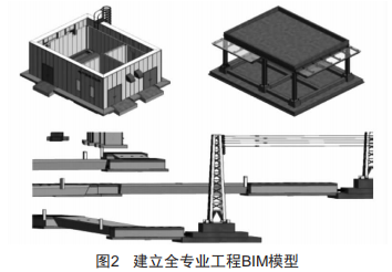 運(yùn)用BIM技術(shù)建立如圖2所示的建筑、結(jié)構(gòu)、電氣等全專業(yè)工程BIM模型,通過全專業(yè)碰撞檢測(cè)實(shí)現(xiàn)工程設(shè)計(jì)圖紙優(yōu)化。應(yīng)用模型開展圖紙會(huì)審、施工技術(shù)交底、智能頭盔可視化管理,提高施工現(xiàn)場(chǎng)安全、質(zhì)量管理水平。在應(yīng)用BIM建模技術(shù)的基礎(chǔ)上,對(duì)施工過程進(jìn)行全過程管控,通過BIM技術(shù),實(shí)時(shí)對(duì)施工進(jìn)度中遇到的技術(shù)性問題進(jìn)行建模修改,遇到關(guān)鍵建設(shè)節(jié)點(diǎn)時(shí),先進(jìn)行碰撞試驗(yàn),可行性分析通過后進(jìn)行現(xiàn)場(chǎng)施工,大大減少了施工所耗費(fèi)的時(shí)間,并且通過科學(xué)的論證,大大加強(qiáng)了配電站的安全性及穩(wěn)固性。