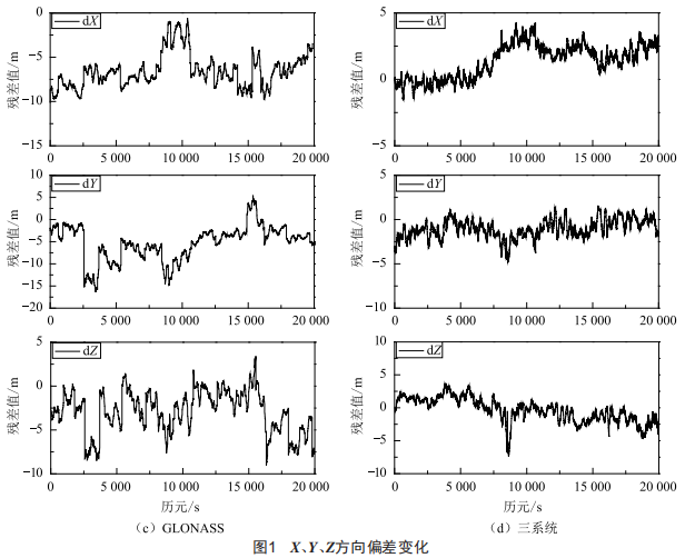 本文研究了各系統(tǒng)間的時(shí)間框架和坐標(biāo)框架的統(tǒng)一 , 并利用實(shí)測(cè)數(shù)據(jù)對(duì)三系統(tǒng)進(jìn) 行 了解 算 , 比 較了BDS 、GPS、GLONASS與三系統(tǒng)組合單點(diǎn)定位的精度。