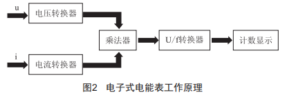 電能表接入電路后對(duì)用戶(hù)電壓、電流進(jìn)行實(shí)時(shí)采樣,然后對(duì)采樣電壓、電流信號(hào)進(jìn)行處理并相乘轉(zhuǎn)換成與電能成正比的脈沖輸出,通過(guò)計(jì)數(shù)器或數(shù)字顯示器進(jìn)行用電量顯示(圖2)。