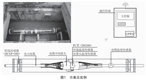 結(jié)合開(kāi)平供電局電纜中間接頭運(yùn)行現(xiàn)狀,急需一種裝置使電纜中間接頭避免浸泡于水中,且能夠監(jiān)測(cè)其溫度、濕度等狀況,以消除運(yùn)行電纜中間接頭的故障隱患。