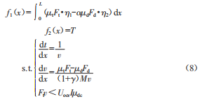 在無接觸感應(yīng)供電有軌電車的運行過程中,儲能系統(tǒng)的能量消耗主要由牽引能耗、輔助能耗和制動回收能量決定,由于輔助能耗為定值,幾乎沒有優(yōu)化空間,因此優(yōu)化牽引能耗和制動回收能量為能耗優(yōu)化的核心。對列車節(jié)能優(yōu)化模型的分析,大量學(xué)者采用了龐特里亞金極大值原理進行求解,可得列車在平道或坡度較小的單區(qū)間內(nèi)最優(yōu)運行工況為牽引、巡航、惰行和制動四種工況。針對時間優(yōu)化,采用巡航模式可得最優(yōu)解:針對能耗優(yōu)化,采用惰行模式可得最優(yōu)解:兼顧兩者優(yōu)化,