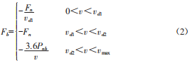式中,Fn為額定牽引力;Pn為列車最大牽引功率;nt1為列車恒功率轉(zhuǎn)折點速度;nt2為列車降功率轉(zhuǎn)折點速度。