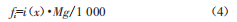 式中,fi為坡道附加阻力)kN):i)x)為列車在x處的坡道千分數(shù))%):M為列車質(zhì)量)t):g為重力加速度)m/s2)。