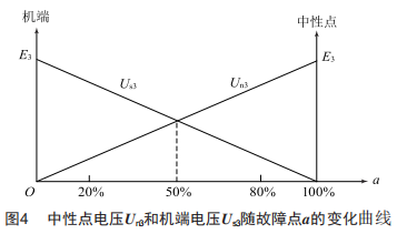 定子單相接地時(shí) ,零序電壓U0 與接地點(diǎn)a的關(guān)系如圖2所