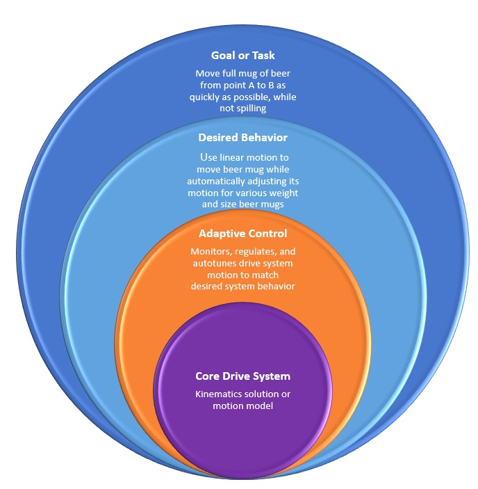 要素II:預期系統(tǒng)行為:明確該目標后,具有自我意識的運動控制圖的下一級別發(fā)起預期的運動行為。在啤酒杯例子中,這將是“使用線性運動來移動啤酒杯,同時自動調整其運動,從而在所需的機械系統(tǒng)控制安全限制內補償不同的啤酒杯重量和尺寸”。