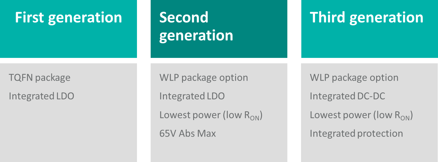 第一代IO-Link收發(fā)器技術(shù)采用易于使用的TQFN封裝,集成LDO,可以滿足小型傳感器設(shè)計(jì)的需求。基于功率和尺寸考慮,第二代收發(fā)器技術(shù)優(yōu)化了功耗,采用一種可以降低RON的技術(shù)來進(jìn)一步降低功耗,并可以使用更小的WLP封裝。