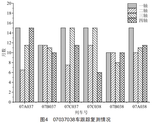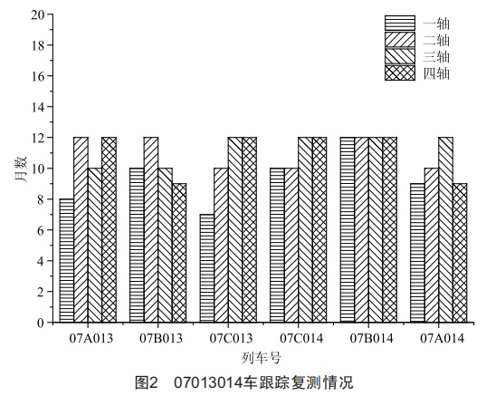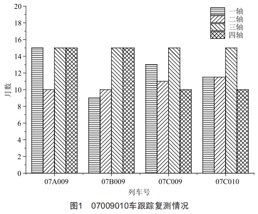 為跟蹤七號(hào)線輪對(duì)圓跳動(dòng)發(fā)展情況,從2017年7月開(kāi)始選擇07009010、07013014、07029030、07037038車進(jìn)行圓跳動(dòng)發(fā)展變化跟蹤,選車原則及要求為:(1)跟蹤列車運(yùn)行公里數(shù)相近:(2)跟蹤列車輪對(duì)在開(kāi)展研究前需安排整車輪對(duì)髓修:(3)跟蹤列車需保證每月運(yùn)行公里數(shù)相近。