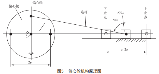 打棗作業(yè)機(jī)構(gòu)和偏心輪機(jī)構(gòu)原理圖如圖2、圖3所示。