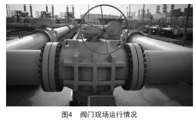 最后的成品閥門(圖4)經(jīng)工廠測試可以達(dá)到在全壓差下開關(guān)5次以上才進(jìn)行1次補脂操作的良好結(jié)果。閥門于2016年3月在線工作至今,運行良好,滿足設(shè)計要求。