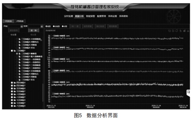 專家系統(tǒng)平臺(tái)包含了實(shí)時(shí)監(jiān)測(cè)、數(shù)據(jù)分析、故障診斷等功能,該系統(tǒng)能夠?qū)﹄姀S內(nèi)主要旋轉(zhuǎn)機(jī)械包括汽輪機(jī)、汽動(dòng)給水泵組、一次風(fēng)機(jī)、送風(fēng)機(jī)、引風(fēng)機(jī)、循環(huán)水泵、凝結(jié)水泵等重要設(shè)備實(shí)現(xiàn)運(yùn)行振動(dòng)情況的實(shí)時(shí)監(jiān)測(cè),從而保證設(shè)備安全運(yùn)行。