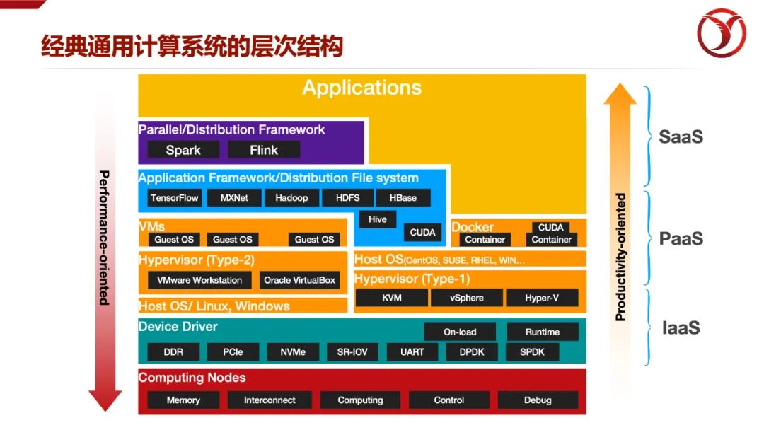 DPU是面向基礎(chǔ)設(shè)施層的數(shù)據(jù)處理單元。鑒于此,Intel也把自己的DPU稱之為“IPU”。那么所謂的基礎(chǔ)設(shè)施層,是有別于應(yīng)用層而言的,是為了給予應(yīng)用提供物理或虛擬化資源,甚至提供基礎(chǔ)服務(wù)的邏輯層。其實(shí)這個(gè)概念很好理解,從我們先有的計(jì)算系統(tǒng)的宏觀邏輯層次來(lái)看,本身就被人為的分為基礎(chǔ)設(shè)施層(IaaS),平臺(tái)層(PaaS),軟件層(SaaS),最上層就是應(yīng)用層。如果微觀來(lái)看,就會(huì)更清晰了。基礎(chǔ)層主要包括與硬件資源交互、抽象硬件功能的組件,包括的網(wǎng)絡(luò),存儲(chǔ),服務(wù)器等。從優(yōu)化技術(shù)的側(cè)重點(diǎn)來(lái)看,越基礎(chǔ)層的組件越傾向于以性能優(yōu)先為導(dǎo)向,存在更多的“機(jī)器依賴(Machine-dependent)”,越上層的優(yōu)化越以生產(chǎn)效率為導(dǎo)向,通過(guò)層層封裝,屏蔽底層差異,對(duì)用戶透明。