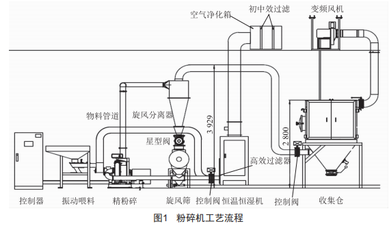 如圖1所示,工藝流程如下:物料一喂料機(jī)一粉碎一旋風(fēng)篩一收集一包裝。
