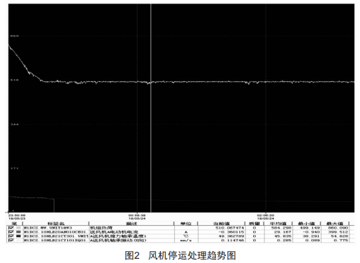 (6)5月24日00:15停運(yùn)A送風(fēng)機(jī),檢查軸承座緊固正常,軸承與轉(zhuǎn)子緊力充足:檢查測量振動探頭與風(fēng)機(jī)連接處輕微松動,重新緊固。風(fēng)機(jī)停運(yùn)時間如圖2所示。