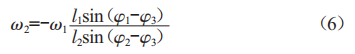 由此,可以得到以下結(jié)論:在某一特定位置,搖桿的角速度和角加速度是定值。按照"死點"設(shè)計的四連桿機構(gòu),使得起倒機構(gòu)在起立和倒伏位置,搖桿的角速度均為0。同時,在起立位置,搖桿的角加速度小于倒伏位置搖桿的角加速度。