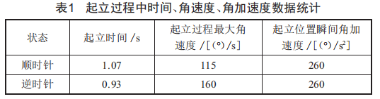 (1)曲柄順時針旋轉(zhuǎn)時起立所需時間(約1.07s)>逆時針起立所需時間(約0.93s):