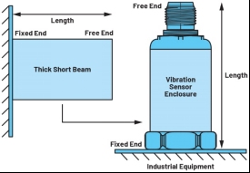 在模態(tài)分析和設計中,可以將振動傳感器看做一個粗短的懸臂梁圓柱。此外,將使用Timoshenko振動方程進行仿真,后文將詳細展開。一個粗短的懸臂圓柱就類似于安裝在工業(yè)設備上的振動傳感器,如圖2所示。振動傳感器通過螺栓固定在工業(yè)設備上。螺栓安裝和外殼設計都需要仔細表征,以免機械諧振影響相關的MEMS振動頻率。采用ANSYS或類似程序的有限元方法(FEM)可以用作求解粗短圓柱的振動方程的高效方法。