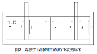 (1)通過(guò)優(yōu)化焊接順序,減少了底門(mén)焊接變形: