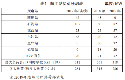 對(duì)施工年份變電站負(fù)荷進(jìn)行預(yù)測(cè),是進(jìn)行電力系統(tǒng)評(píng)估及分析的前提條件。根據(jù)《陽(yáng)江市電網(wǎng)規(guī)劃》及陽(yáng)江供電局系統(tǒng)運(yùn)行部提供的數(shù)據(jù),220kV陽(yáng)江站負(fù)荷預(yù)測(cè)如表1所示。