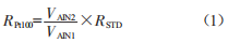 Pt100鉑電阻阻值可由式(1)求得: