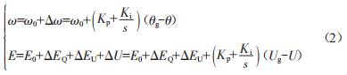 式中,Ao為相位補(bǔ)償量:Kp、Ki為PI控制的比例和積分系數(shù):E0為VSG空載電動(dòng)勢(shì):AU為幅值補(bǔ)償量。