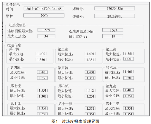 該界面主要實(shí)現(xiàn)按照爐次單爐顯示過熱度和拉速信息(圖1) 。