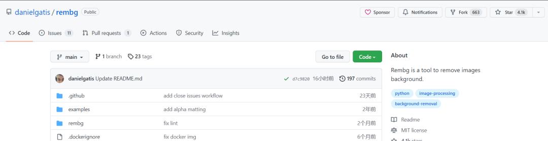 rembg在Github上已經(jīng)有4.1k Star了,趕緊來嘗試一下。