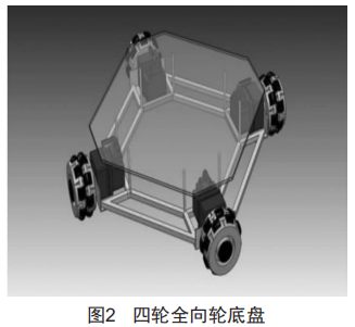 圖2所示為四輪全向輪底盤,采用飯金件加工,預(yù)留多個(gè)定位孔,可用于安裝電機(jī)、傳感器、單片機(jī)等元器件。