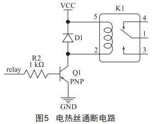 系統(tǒng)工作過程中,當(dāng)收到打包指令時(shí),需開啟電熱絲加熱功能,且電熱絲在其他狀態(tài)下均不工作,故需控制電熱絲工作狀態(tài)。