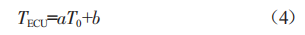 式中,TECU為發(fā)動(dòng)機(jī)ECU各發(fā)熱元器件最高節(jié)點(diǎn)溫度:T0為環(huán)境溫度:a和b為待求解系數(shù)。