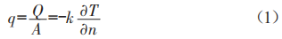 熱傳導(dǎo)過(guò)程中,單位時(shí)間通過(guò)單位面積的熱流量稱(chēng)為熱流密度,如式(1)所示: