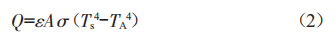 式中,Q為輻射放熱量(w):s為物體的發(fā)射率,與溫度和物體面積有關(guān):A為輻射面積(m2):o為斯蒂芬-玻耳茲曼常量,值為5.67×10-8w/(m2·k4):Ts為物體表面溫度(K):TA為環(huán)境溫度(K)。