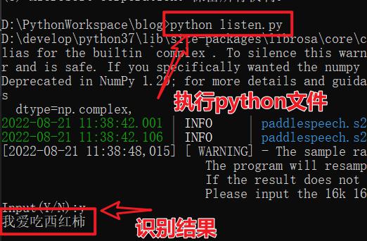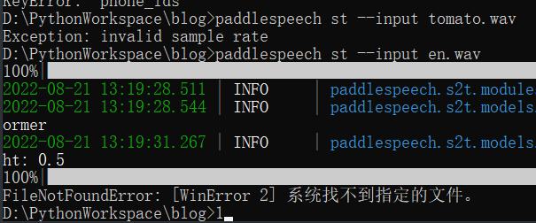 from paddlespeech.cli.asr.infer import ASRExecutor asr = ASRExecutor() result = asr(audio_file="tomato.wav") print(result)