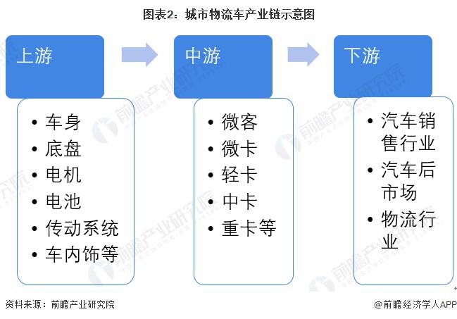 城市物流車(chē)行業(yè)上游產(chǎn)業(yè)鏈涉及車(chē)身、底盤(pán)、電機(jī)、電池、傳動(dòng)系統(tǒng)、車(chē)內(nèi)飾等六部分;中游產(chǎn)業(yè)鏈為各大主機(jī)廠、制造商等;下游為汽車(chē)銷(xiāo)售、汽車(chē)后市場(chǎng)以及物流行業(yè)。