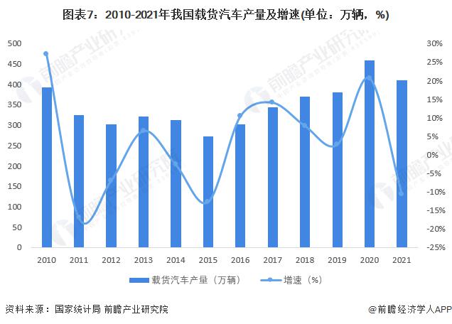 根據(jù)國(guó)家統(tǒng)計(jì)局?jǐn)?shù)據(jù),近年來(lái)我國(guó)載貨汽車(chē)產(chǎn)量呈波動(dòng)上升趨勢(shì)。2021年我國(guó)載貨汽車(chē)?yán)塾?jì)生產(chǎn)409.9萬(wàn)輛,同比下降10.7%。