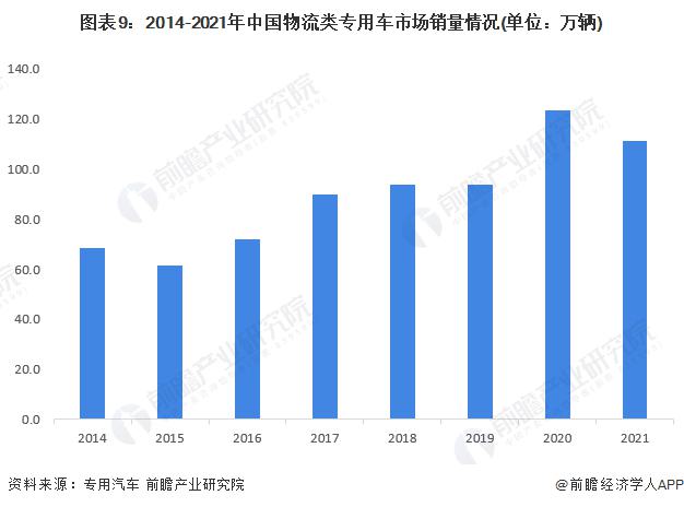 根據(jù)《專(zhuān)用汽車(chē)》期刊對(duì)八大類(lèi)物流專(zhuān)用車(chē)銷(xiāo)量統(tǒng)計(jì)得出,2021年全年銷(xiāo)量?jī)H111.1萬(wàn)輛,同比下降10.1%。
