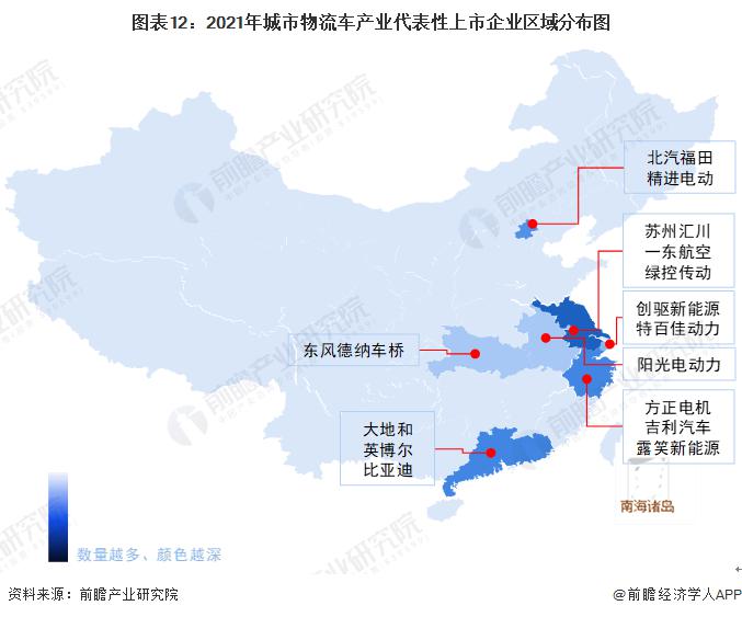 從代表性企業(yè)分布情況來(lái)看,我國(guó)城市物流車(chē)代表企業(yè)分布在江蘇、上海、浙江、廣東等沿海省市,以及安徽、湖北、北京等內(nèi)陸省市。