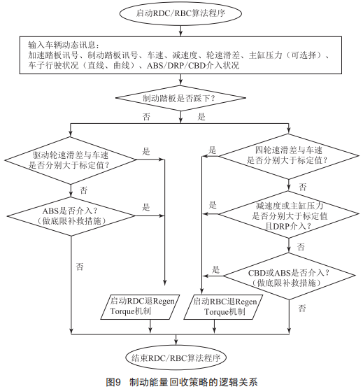 針對新能源汽車能量回收,制定兩種可能的策略,即上述兩種功能:在高附路面RBC以及低附路面RDC。簡單的邏輯關(guān)系如圖9所示。