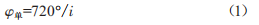 利用公式(2)計(jì)算出的其他各氣缸上止點(diǎn)時(shí)刻tEQ \* jc3 \* hps10 \o\al(\s\up 3(, 以及夾持式壓力傳感器測(cè)量出的各氣缸噴油時(shí)刻tEQ \* jc3 \* hps10 \o\al(\s\up 3(,可以計(jì)算出各氣缸的噴油提前角為: