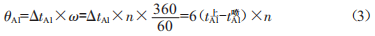 根據(jù)夾持式壓力傳感器測(cè)量出的A1缸噴油時(shí)刻tEQ \* jc3 \* hps10 \o\al(\s\up 3(及測(cè)光計(jì)測(cè)量出的活塞上止點(diǎn)時(shí)刻tEQ \* jc3 \* hps10 \o\al(\s\up 3(, 即可計(jì)算出A1缸的噴油提前時(shí)間●tA1 ,將其換算成曲軸轉(zhuǎn)角 ,便得到A1缸的噴油提前角9A1值 :
